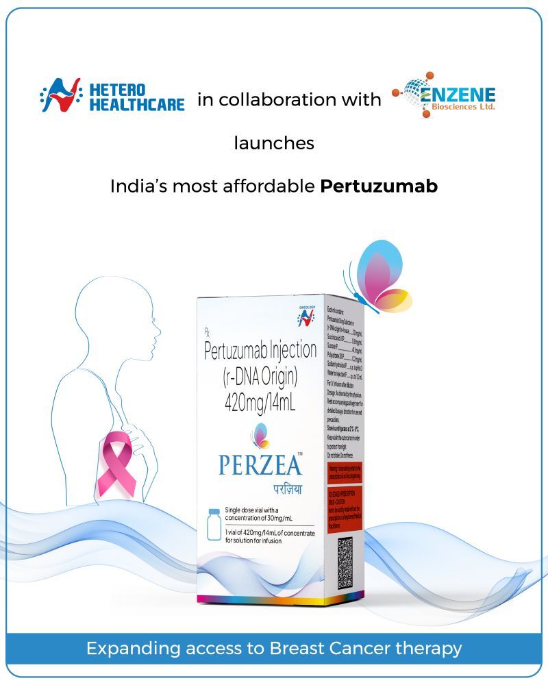 Hetero Healthcare Ltd., one of India’s leading pharmaceutical companies, has launched Perzea, the most affordable biosimilar of Pertuzumab, in collaboration with Enzene Biosciences Ltd. This milestone strengthens Hetero’ s commitment to making advanced breast cancer therapies accessible and affordable across India.